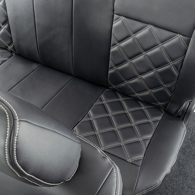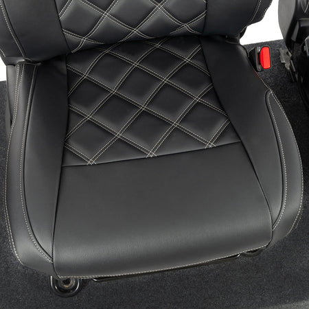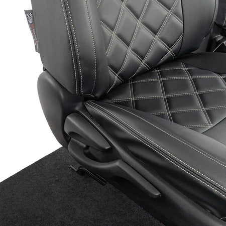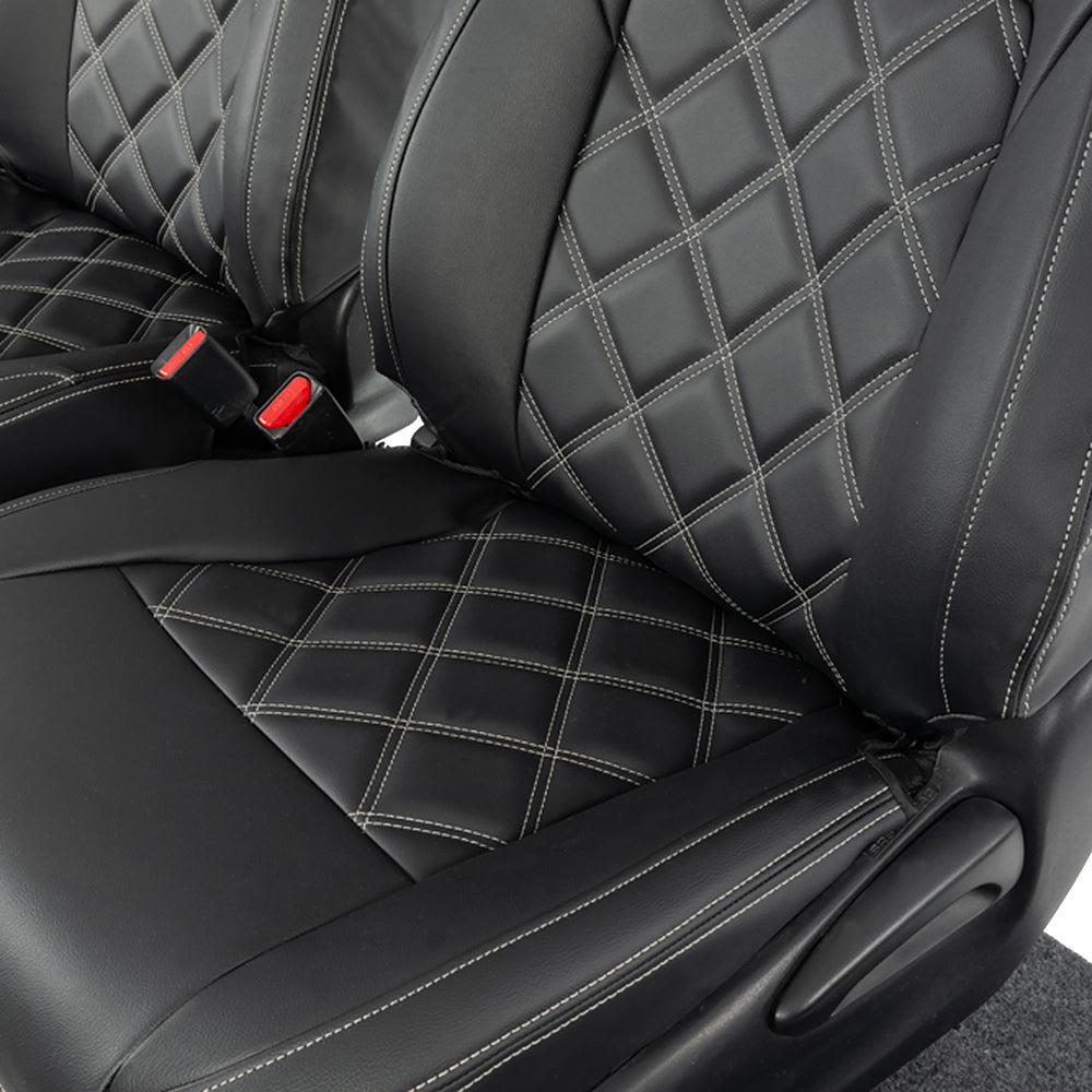 Our full range of tailored leatherette seat covers are made from a high quality sponge backed leatherette material (5mm sponge backed with tricolette on the outer sections and 10mm sponge backed in the centre sections). The material used is rigorously tested under laboratory conditions to ensure full protection of your original seats from the elements. The material offers a genuine leather look and feel. Using the latest technologies these seat covers are designed not just to protect your seats but also to provide an ultra-smart look to the vehicle interior.